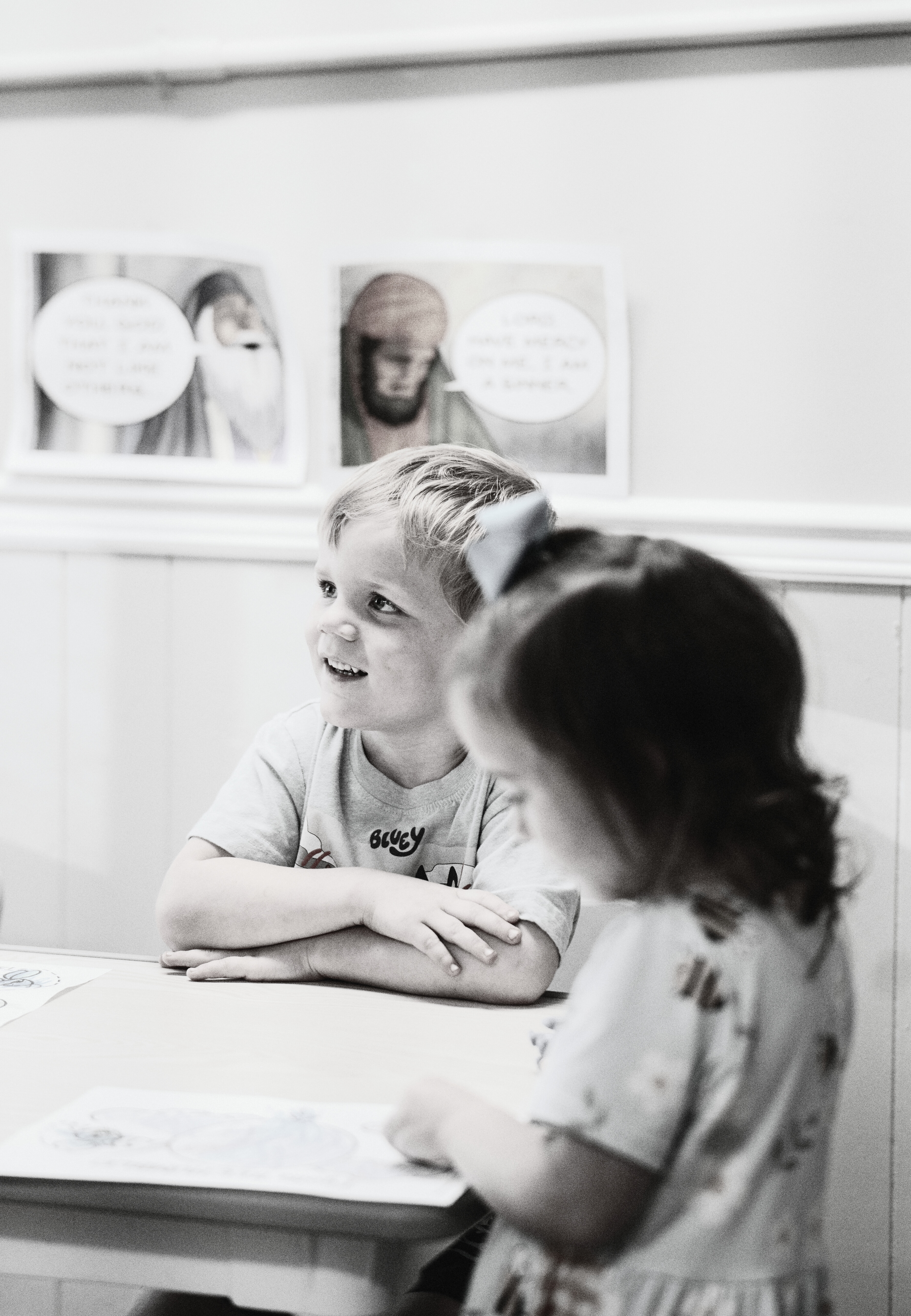 Our Pre-K class provides a safe, fun, and engaging environment designed especially for curioys four and five year olds. Our teachers guide children through age-appropriate activities that spark creativity and build friendships. Each week includes hands-on crafts, interactive Bible lessons, worship, snacks, and play- all helping kids discover God’s love in ways they can understand.
